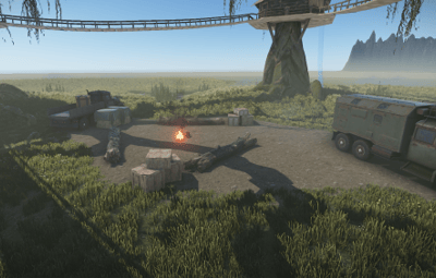 The prefab includes the following: 4 basic crates, 2 food box, 4 normal crates, 1 toolbox crate, a research table, a repair bench and a level 1 workbench.