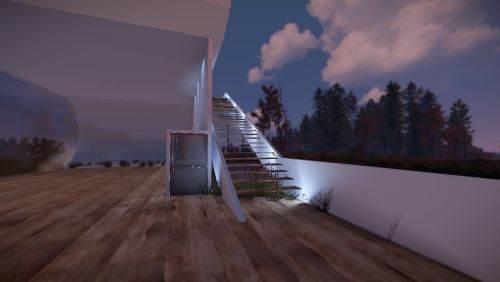 It is made in a modern design. Players will be able to build and live in a modern house, there is a place for a car or air transport. The stairs have lighting.