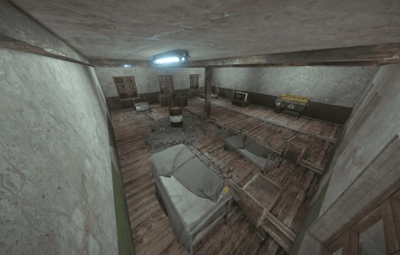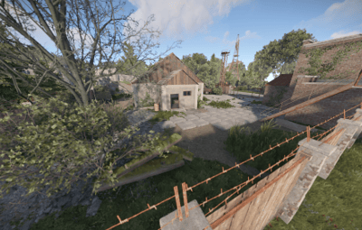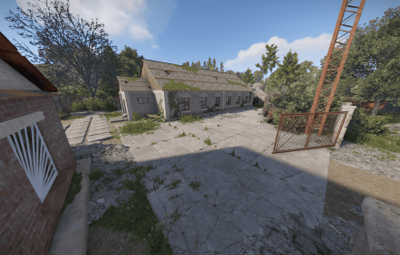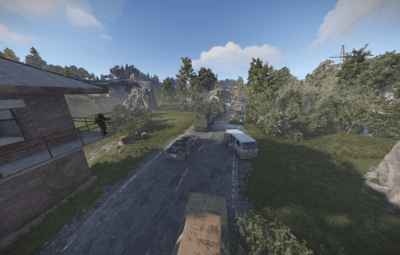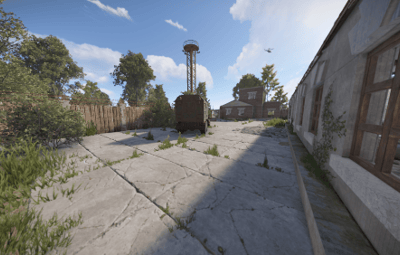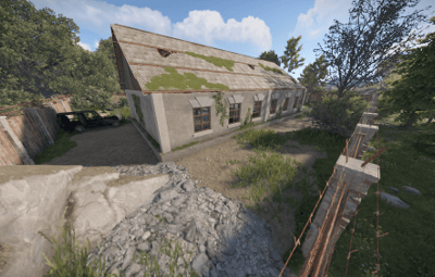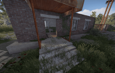 Players can find a green card and a recycler at this roadside prefab.