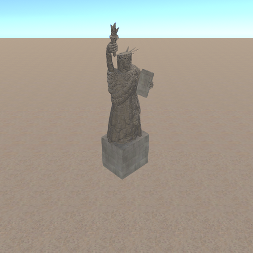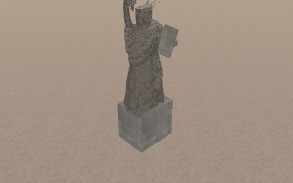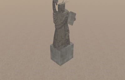 It is a copper monument depicting a standing woman dressed in a long tunic.