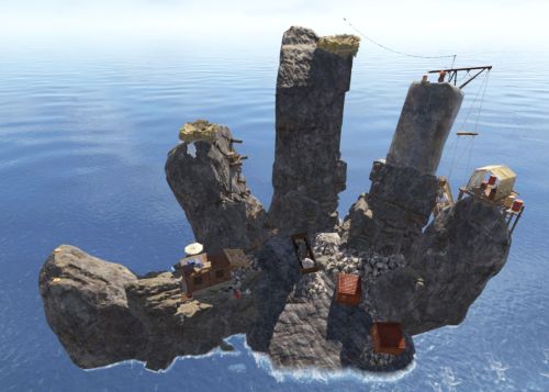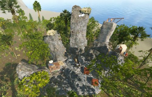 The hand looks most atmospheric when placed in shallow coastal waters, but it can be positioned almost anywhere on land as well. Players can climb across the rocks to discover hidden loot and vantage points. A small shack with a green keycard door offers an extra point of interest and rewards exploration. Perfect as a striking landmark or event location on your map.