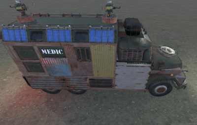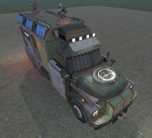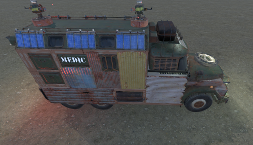 My very first build. The vehicle is stationary, but acts as a small safezone, or a refuge for players being chased by zombie/npc hordes. 100% confort when standing near it. Hope your map will look just that little apart from the rest!