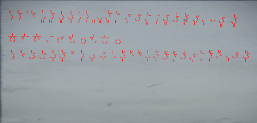 Symbols of the Yautzha language from the famous Predator film series. The complete alphabet from A to Z.
