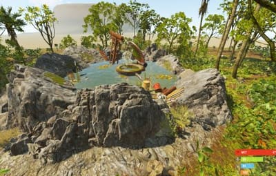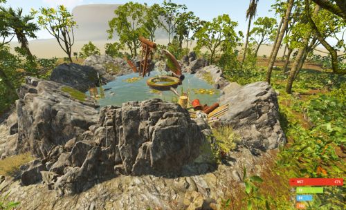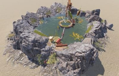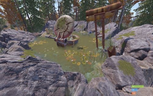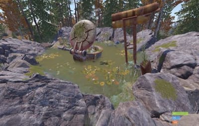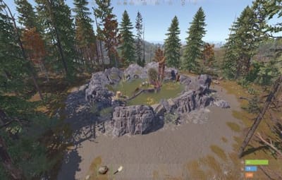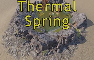 A small thermal spring surrounded by rocks. Can be utilized as useful micro-monument and unique point of interest. Central pipe releasing steam, offering 100% comfort for the players. A pool contains drinkable and fishable water. There are some loot containers around: