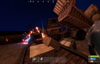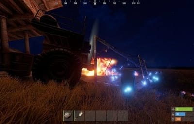 A little decor scene with two trucks crashed on open street. Some flame and tesla effect for the ambience.