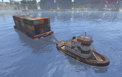 A simple Cargo Barge towed by a Tugboat prefab that you can place on your custom maps that