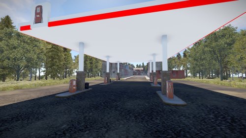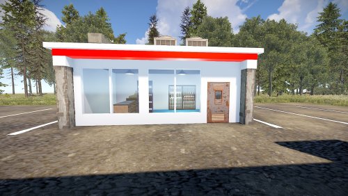 Very simple and detailed gas station, has fully finished interior and includes 6 gas pumps with a parking lot.