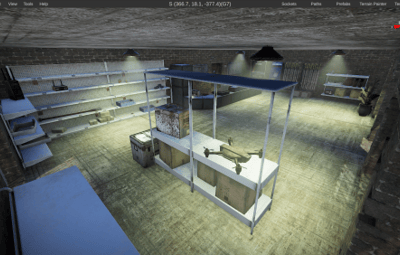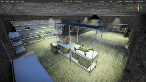 A weapons store that includes a checkout area and mostly decoration. The backroom is not used.