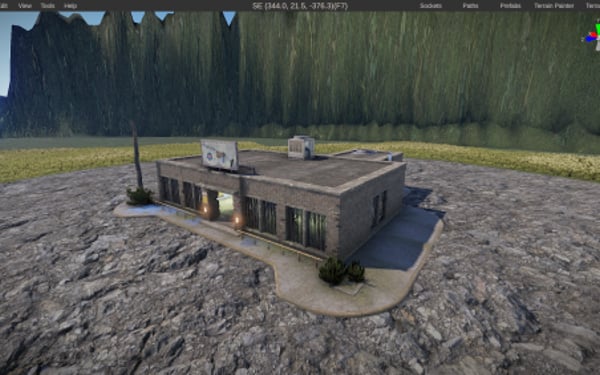 The prefab is standalone and does not include height, splat, alpha or topology of any kind.