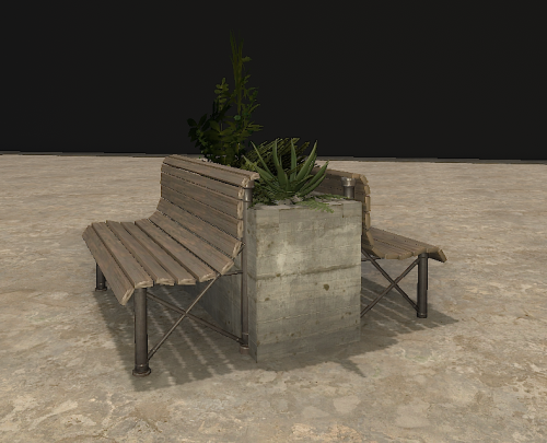 -Wooden bench with planter