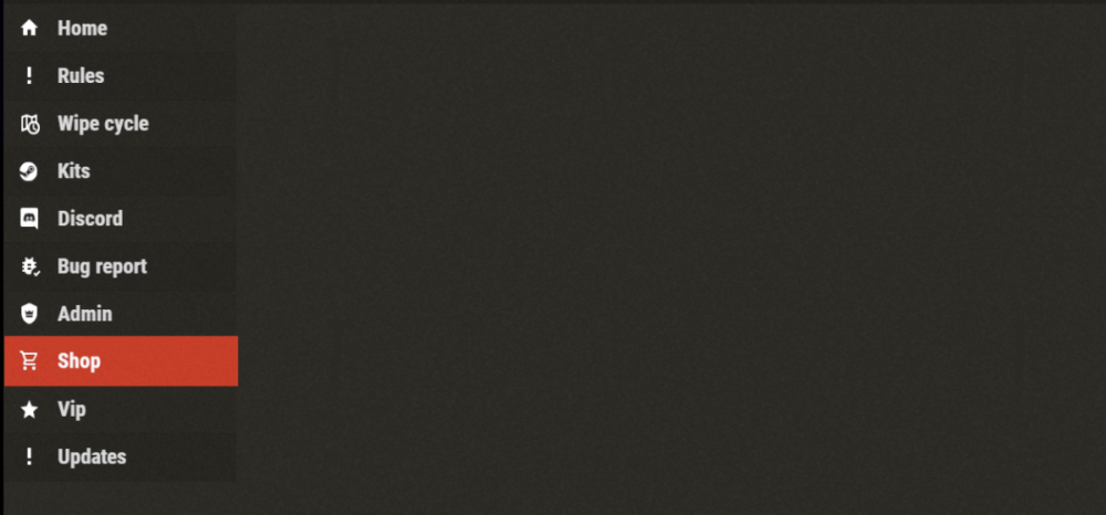 1. I can't display ShopUI in WelcomePanel "Addons": { "Tab 1": "null", "Tab 2": "null", "Tab 3": "WPWipeCycle", "Tab 4": "WPKits", "Tab 5": "WPSocialLinks", "Tab 6": "null", "Tab 7": "null", "Tab 8": "Shop", "Tab 9": "WPVipRanks", "Tab 10": "null" } It looks like this for me. And in game like in uploaded image