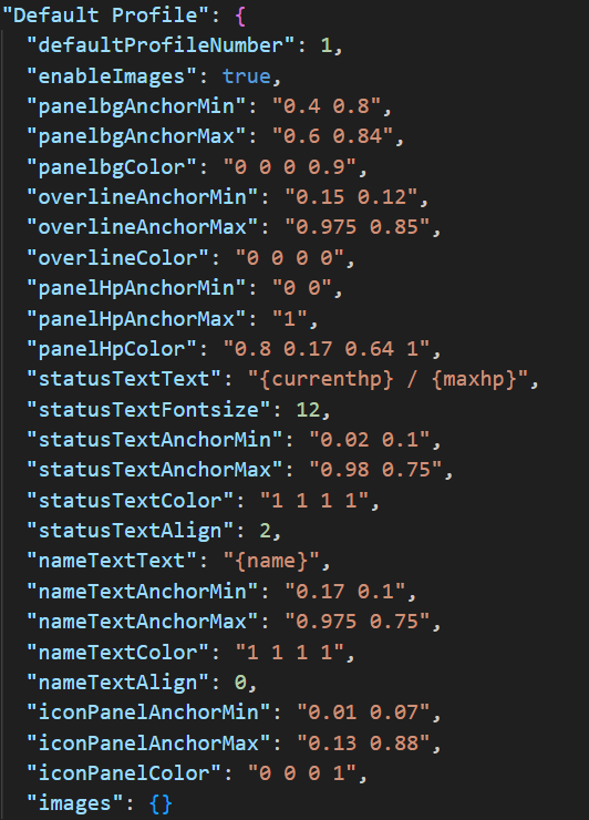 Hi , file is has been updated , in second line of config called "Use default profile as first choice for new players unless they change it later" , change this to true and You can put Your old backup number and values , save and reload and everybody will use Your old backup version as first one , until they change it themselves. I will put You image here also as an example. "defaultProfileNumber" is something You don't need to take care of at all in this case. In other case that You want to use different chat command name to open the menu , It would be unnecessarily complicated to do it through UI or config so easiest to do for You is just to rewrite it in the code itself. Open NPCHealthBar.cs , the main plugin file and in the line 1073 , look for this [ChatCommand("npcbar")] and just rewrite what is in " " for whatever You would like for example [ChatCommand("exapmle")] which will act like this /example in game. You can use CTRL+F and put it in there to find it easier. Hope this helps , In any case let me know and I wish You nice rest of Your day.