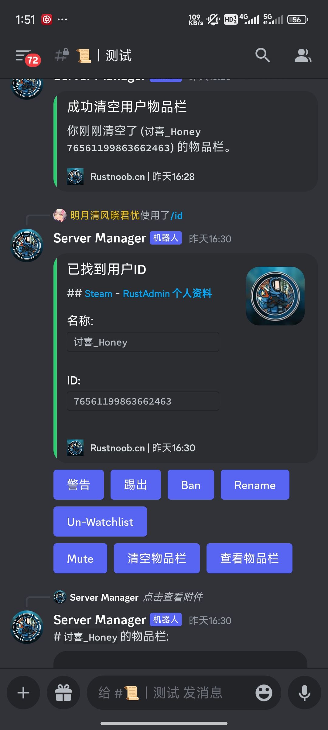 I used the latest Discord DLL , Using/warn in the game or warm in the console is valid, but it is invalid in Discord without any errors. When I use the warm command in the game and then use the warm list on Discord, an error will appear: