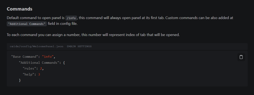 21. Yes, you can create commands which will lead to specific tab of welcome panel. Also make sure you change default command in Shop config as two plugins can't register same command. https://docs.rustplugins.net/welcomepanel/main#commands