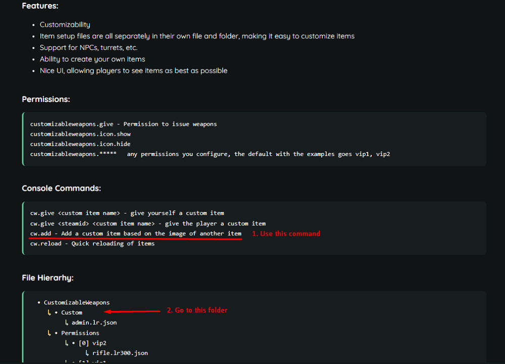 Hi. After you have added an item, in another plugin you need to specify in the "shortname" field the name to .json In your case, you need to specify "pants-1" in the "shortname" field, skin id as desired. If you need a more specific example, provide the config of the plugin you want to customize, I will show you how it should look like. Привет. После того кого как вы добавили предмет, в другом плагине вам необходимо указатЬ в поле "shortname" название до .json В вашем случае, необходимо в поле "shortname" указатЬ "pants-1", айди скина по желанию. Если вам необходим более конкретный пример, предоставЬте конфиг плагина который вы хотите настроитЬ, я покажу как это должно выглядетЬ.