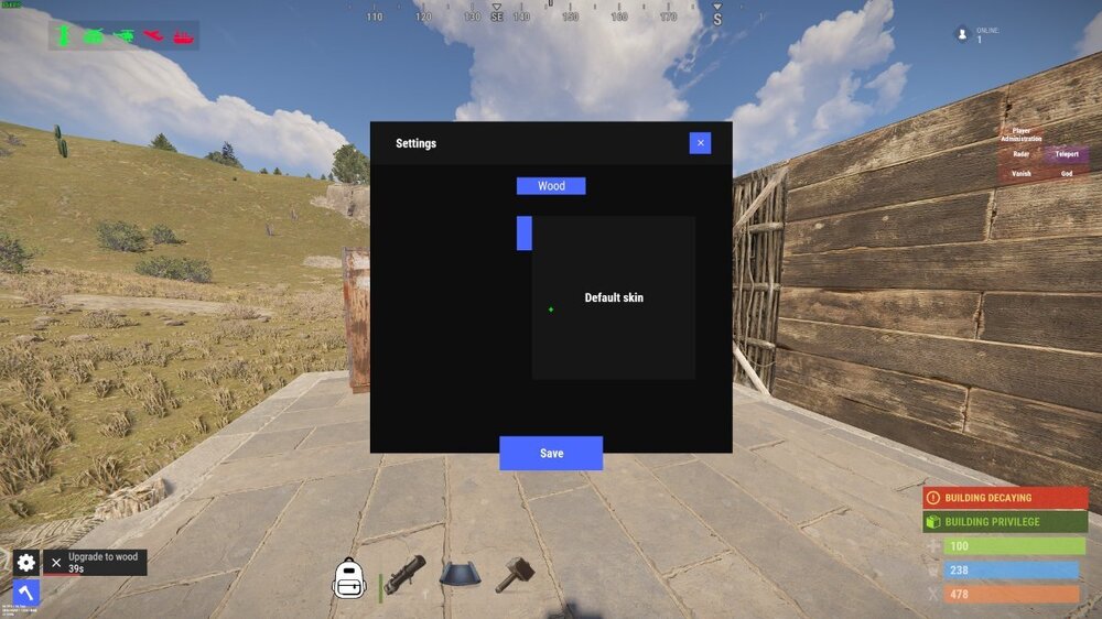 Not really a big deal for me but I would like to point out a bug or oversight as I don't think you intended it to be this way. So for me, I'm going to allow everyone access to use grade 1 (maybe 2) without skins. I'm going to tie grades 2-4 behind an oxide group with skins. It seems when there are fewer than 4 buttons to click (regardless of if there is permission to use the skins) that it shifts the GUI when you press the gear icon. For me it doesn't matter cause they can't click on anything anyways just figured I'd let you know. Normal layout with all 4 tiers tier 1-3 - image box shifted to the left. There is no gap between the blue box and the skin box tier 1-2 Tier 1