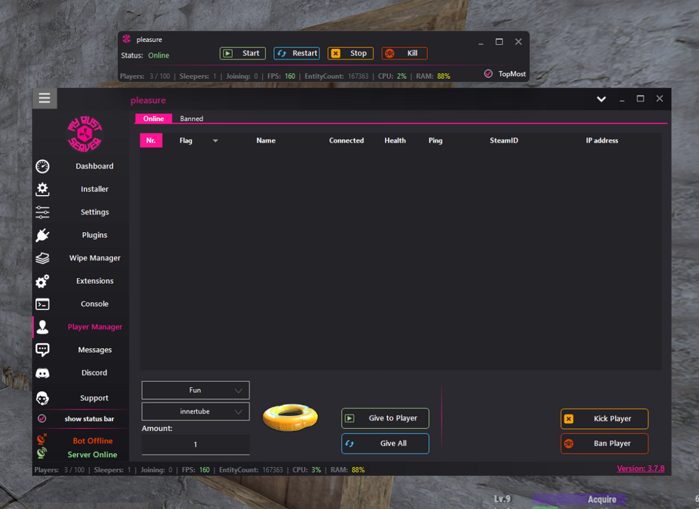 player manager ui does not detect players but i can give items if i hit the give all i and a friend are currently on the server yet it does not show anyone