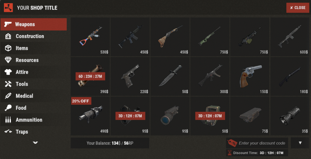 I want to know if there is a way to use the shop with the command in addition to the Welcome addon, if not you can add this to the config? Also, I want to know how I can change in the plugin code the side of the currency in the shop, I want it on the left side and not on the right side. and I want to ask if it is possible in the future to add a discount system with an option to choose in config a code and when the player redeems the code in the shop he will get an %X discount when buying, the number of how much he will get a discount will be in the config, in addition to set for how much time the code will be available per user. here are some examples of the design of how I think it should be: