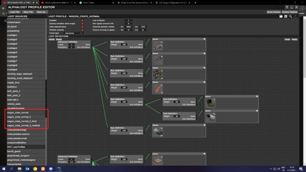 I am going to edit my tournament loot table in a couple of minutes so will have work insdie AlphaLoot profile editor and will screenshot you the tables that I know are used for wagons. (not sure if they still work because last update FP buffed the loot for wagons and they might changed something) Also BetterLoot do not support them as I know but if you use AlphaLoot Hammer feature and hit the crate should display the name of the crate. Ubertool might not detect these crates idk. -