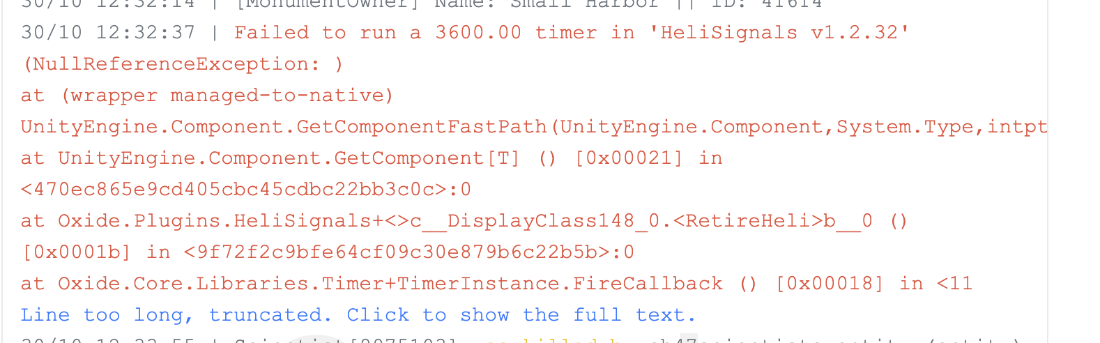 Tried this, set from 30min to 60min. Still sometimes called helis despawn after 3minutes of being spawned. Also noticed today this red error in the console ( maybe could be related )