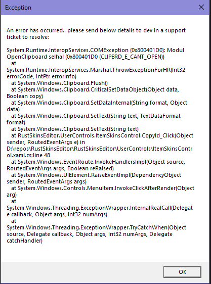 Hi, it happens about 3 out of 5 times that when I click "copy ID", the app just freezes with the following error and then crashes.