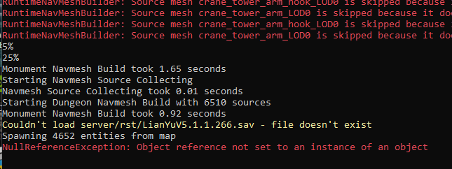 I ran the updated map v5.1.1 and love the custom monuments. Tested after wipe yesterday. Now the map won't load due to a LianYuV5.1.1.266.sav file not existing. I've tried to restart the server and even tried another wipe to see if that would clear it up. There are a few errors on the map but nothing that makes it unplayable. You did an awesome job for sure and my players really seem to like it. I just want them to be able to keep liking it.