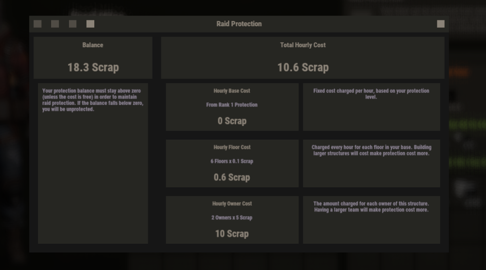 21. Another suggestion: Let this work together with the No Escape plugin that blocks things in combat or raid. I am thinking of a block that won't let players activate Raid Protection while in Combat or Raid. This way players won't be able to suddenly decide to raid their base in the middle of being raided which would be very unfair and disappointing for the raiders.