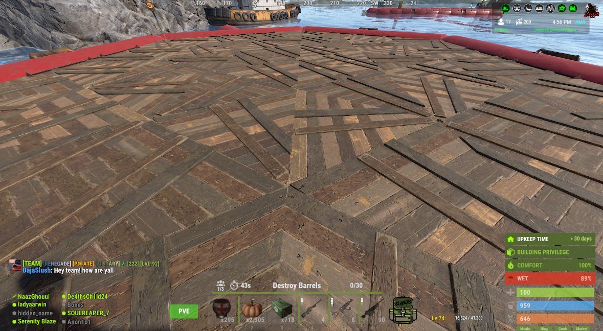 When anchored a players barges base is sheet metal then when they remove the anchor the base turns partially into twig like in the photos. if i move the base around the flooring with what looks like wallpaper moves its location on the floor so they are not always the same. when anchoring or pulling it up, anyone on the building falls to the water not sure if any of this behavior is normal but i can tell you that when building on them ive noticed i rubberband a ton durning it while my wife is not having any issues running around on the island the base has changed to this randomly now and shows wall paper on it that cant be picked up. note we did not wall paper it or even try.