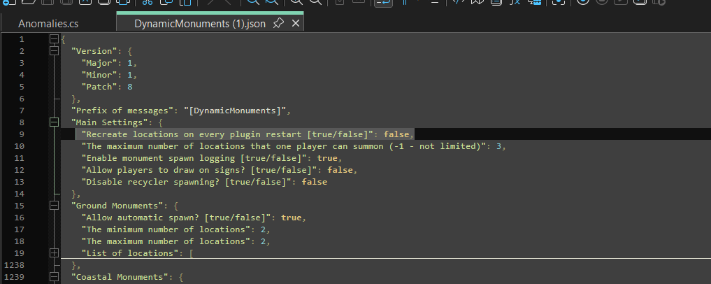 Hi. Sorry, I missed the notification. Locations spawn automatically with each wipe. To make them spawn manually, you can use the command /respawnmonuments — this will force a spawn from the config. Alternatively, you can set it up so that monuments respawn every time the server restarts (pic 1) Please note that in your current config, automatic spawning is enabled for only one type of monument, so only that one will appear. (pic2)