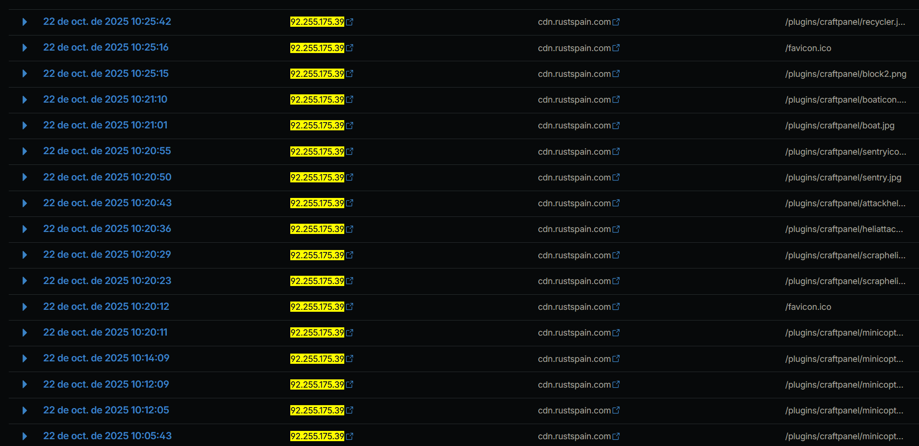 I see requests that were returned correctly, meaning I don't see Cloudflare blocking anything. Do the images load in your browser? Could you try loading them from the server itself? (I don't know if you have access or the ability to do this.) It's definitely something related to downloading the images to the server. Try: https://cdn.rustspain.com/plugins/craftpanel/recyclericon.png You can also try wiping the image data from ImageLibrary. However, you'll have to reload all the plugins that use it to load them again. Console command: refreshallimages