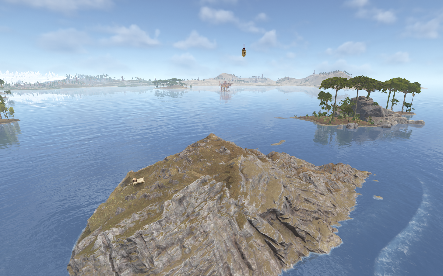 It is located in the center of the map, floating at roughly 30 meters above ground. It appears sporadically and not consistently. It is most likely the garbage point, which apparently cannot be moved or changed. ~ 0, 30, 0