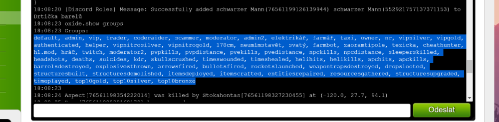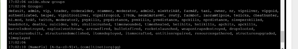 i got a message from discordroles about these missing groups where i have set up these roles to be synced with discord roles but now i see that these oxide groups are not there, the plugin should autocreate them right? i dont really remember that i would be creating oxide groups for the first ranks so it should be like this right?, have not you made some error while adding new ranks? i have provided all oxide groups that are running on my server after playerranks plugin makes a wipe for stats 17:14:26 Loaded plugin Discord Roles v2.0.10 by MJSU 17:14:26 [Discord Roles] Server group does not exist: 'PlantsGathered'. Please create the group or correct the name 17:14:26 [Discord Roles] Server group does not exist: 'FishCaught'. Please create the group or correct the name 17:14:26 [Discord Roles] Server group does not exist: 'MLRSFired'. Please create the group or correct the name 17:14:26 [Discord Roles] Discord Roles Ready 17:14:31 [Discord Roles] Message: Starting sync for 258 linked players }, "PlantsGathered": { "CollectStats": true, "EnabledInPersonal": true, "EnabledInTop1": true, "EnabledInTop30": true, "IncludeInChatBroadcast": true, "Title": "<color=#00FF88>[Zahradník]</color>", "ShowTitleInPlayerChatMessages": true, "ChatPriority": 1, "BroadcastTitleChanges": true }, }, "MLRSFired": { "CollectStats": true, "EnabledInPersonal": true, "EnabledInTop1": true, "EnabledInTop30": true, "IncludeInChatBroadcast": true, "Title": "<color=#858585>[Dělostřelectvo]</color>", "ShowTitleInPlayerChatMessages": true, "ChatPriority": 1, "BroadcastTitleChanges": true }, }, "FishCaught": { "CollectStats": true, "EnabledInPersonal": true, "EnabledInTop1": true, "EnabledInTop30": true, "IncludeInChatBroadcast": true, "Title": "<color=#59E9FF>[Rybář]</color>", "ShowTitleInPlayerChatMessages": true, "ChatPriority": 1, "BroadcastTitleChanges": true },