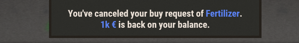 1.1.0 yes. Have changed this line in lang now. Fixed for me. "RefundBuyRequest": "You've canceled your buy request of <color=#5c81ed>{0}</color>.\n<color=#5c81ed>{1}</color> is back on your balance.", should be i think. "RefundBuyRequest": "You've canceled your buy request of <color=#5c81ed>{0}</color>.", or better "CanceledBuyRequest": "You've canceled your buy request of <color=#5c81ed>{0}</color>.",