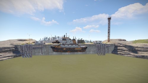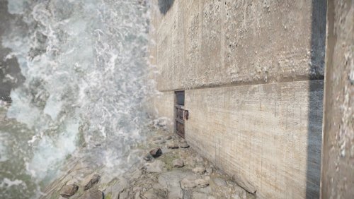 Monument with bots and loot. The damn has one tunnel entrace on top.