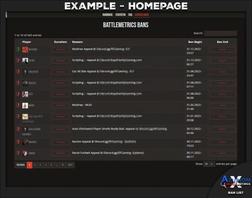 Integrate the BattleMetrics Banlist directly onto your Azuriom website. Keep your community informed about player bans in a simple and efficient way.