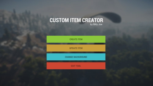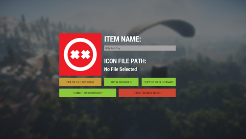 This is a simple tool for developers who want to make custom items, this allows you to chose a item name (Workshop Name) and item image anywhere on your computer (.png) and upload it to your rust steam workshop. This will allow you to get the workshop ID in which you use to create a "custom" item.