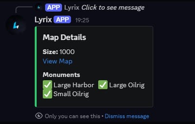 /maps generate - Generate maps for a server using Rustmaps /maps manage - Manage maps of a server (can also insert links of your own maps)