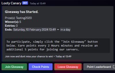Note: As of the current version, the bot supports only one giveaway at a time. This limitation is planned to be addressed in the next update.