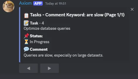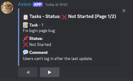 Interactive Paginator – Navigate through tasks with buttons for easy viewing.