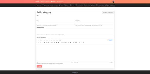 Requires Ember CMS 2.15+, PHP 7.4+, MySQL 5.7.8+ (utf8mb4)