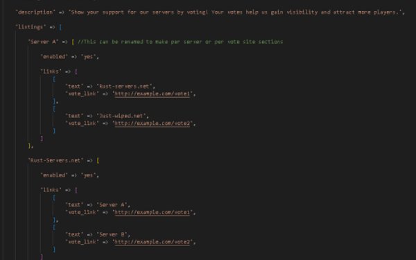 This add-on provides a simple yet effective way to engage your community and boost your servers' popularity. With its user-friendly features, seamless integration, and professional appearance, the Vote Links Add-On is an essential tool for any Rust server owner who uses the Outpost template.