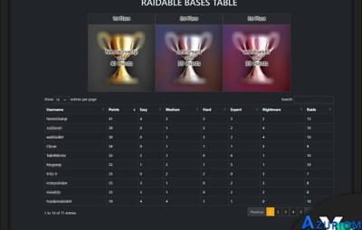 - Real-time Leaderboard: A clear ranking showcasing player achievements in RaidableBases.