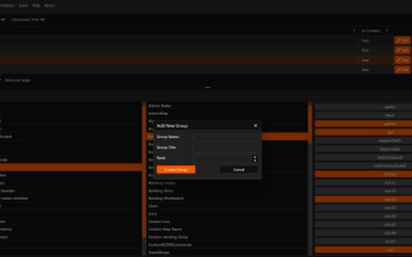 • Permission Group Management: Easily manage permission groups and individual permissions through the intuitive UI. Create, delete, and sync groups across multiple Rust servers seamlessly.