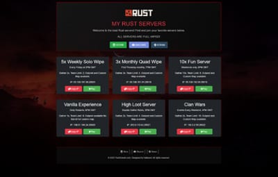 This theme is perfect for Rust server owners who need a simple and clean homepage to display their server details and provide easy access to their community.