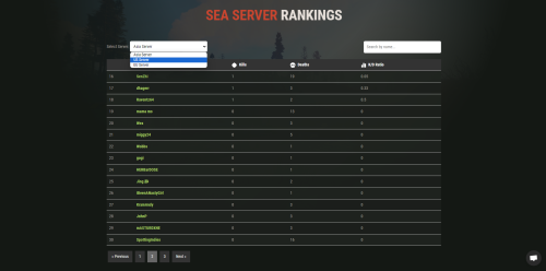 - View Rankings: Navigate to the page where you included ranking.php. You will see a dropdown to select the server, a search box to filter player names, and a table displaying the player rankings.