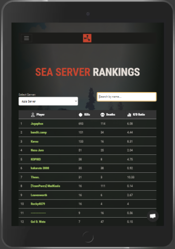 This project provides a web-based ranking system for Rust game servers. The rankings are pulled from multiple servers via SFTP, cached, and displayed on a web page with pagination and search functionality.