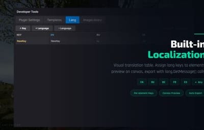 Full multi-language support for your plugins. Assign lang keys to any text element, manage translations visually, and export with automatic