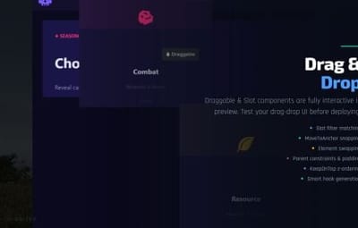 All CuiDraggableComponent properties are supported in preview: LimitToParent, MaxDistance, AllowSwapping, DropAnywhere, DragAlpha, ParentPadding, ParentLimitIndex, AnchorOffset, and more.