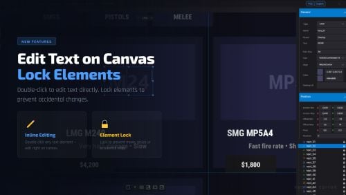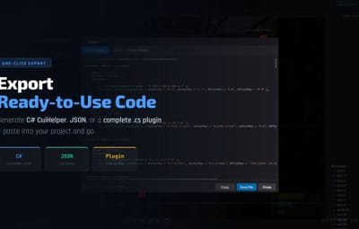 Rust CUI Editor is a desktop application for creating Rust game UI (CUI) interfaces using a visual drag-and-drop editor. Instead of writing dozens of lines of CuiHelper code and constantly reloading your plugin to see the result, you design everything visually and get clean, working code instantly.