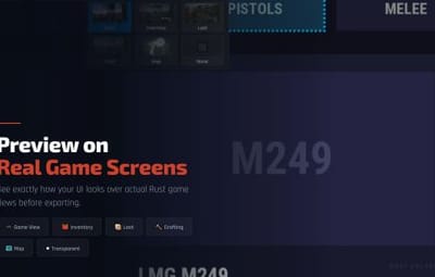 See your UI exactly as it appears in-game, right inside the editor. Every element is fully rendered with correct Rust scaling, colors, sprites, and fonts. No need to reload your plugin to check the result.